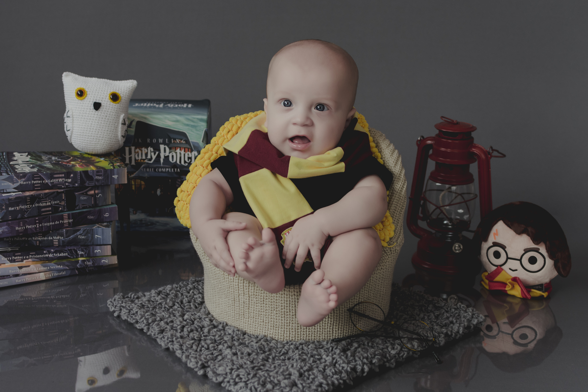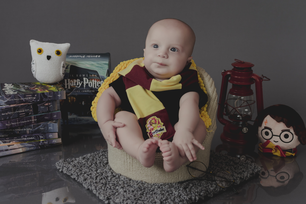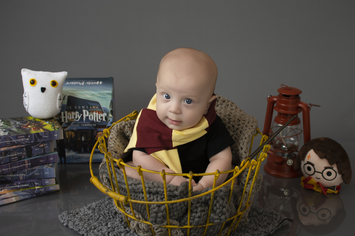 Esse mês fizemos algo especial, para atender um desejo e sonho da mamãe Lays que é apaixonada pelo Harry Potter... e de quebra curtir o carnaval. Ficou tudo muito fofo.... Heitor em seu ensaio de 5 meses.