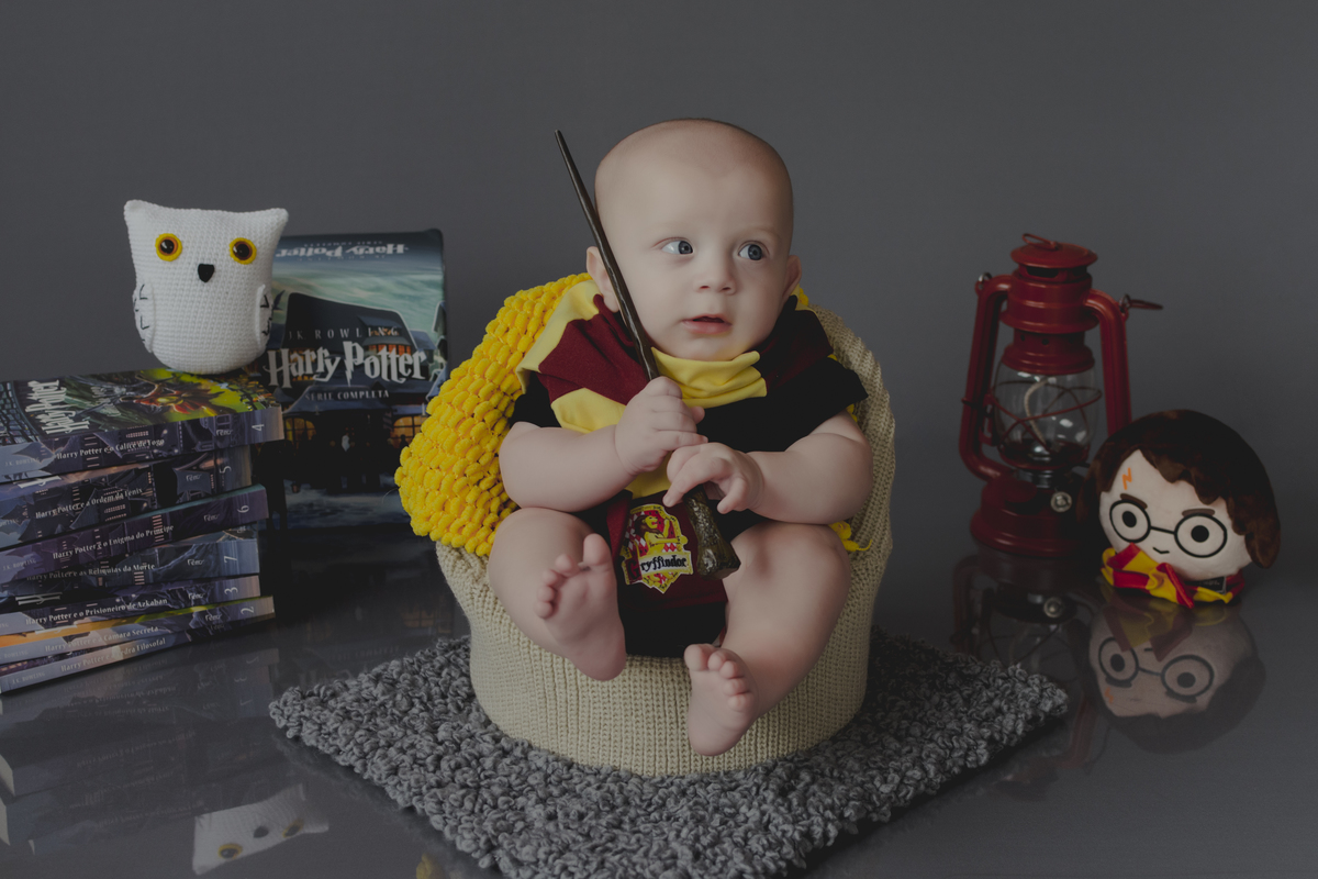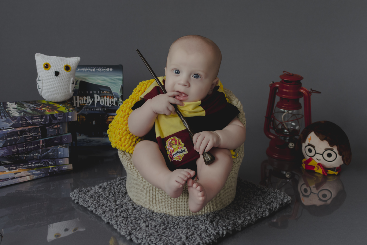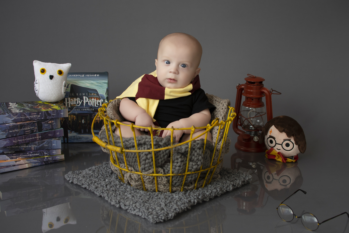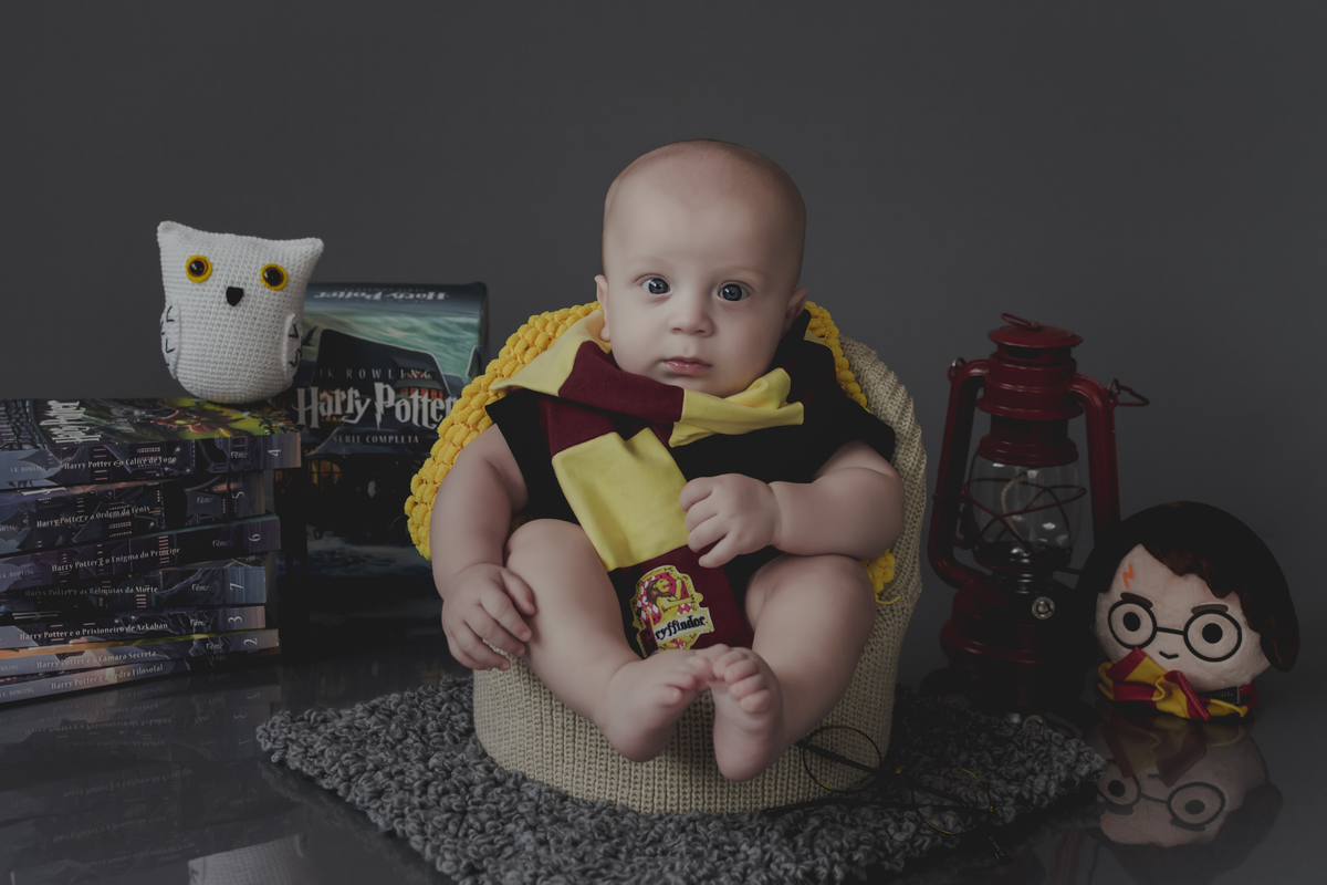 Esse mês fizemos algo especial, para atender um desejo e sonho da mamãe Lays que é apaixonada pelo Harry Potter... e de quebra curtir o carnaval. Ficou tudo muito fofo.... Heitor em seu ensaio de 5 meses.