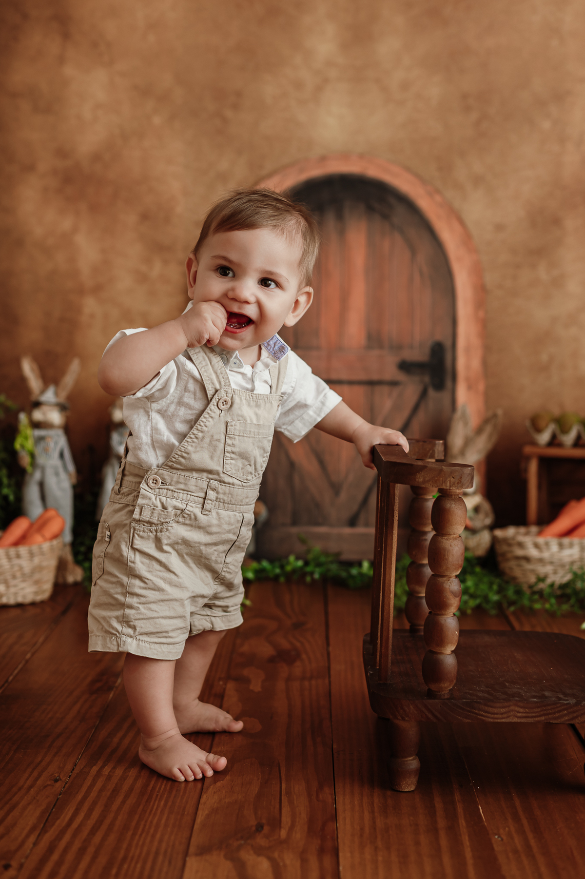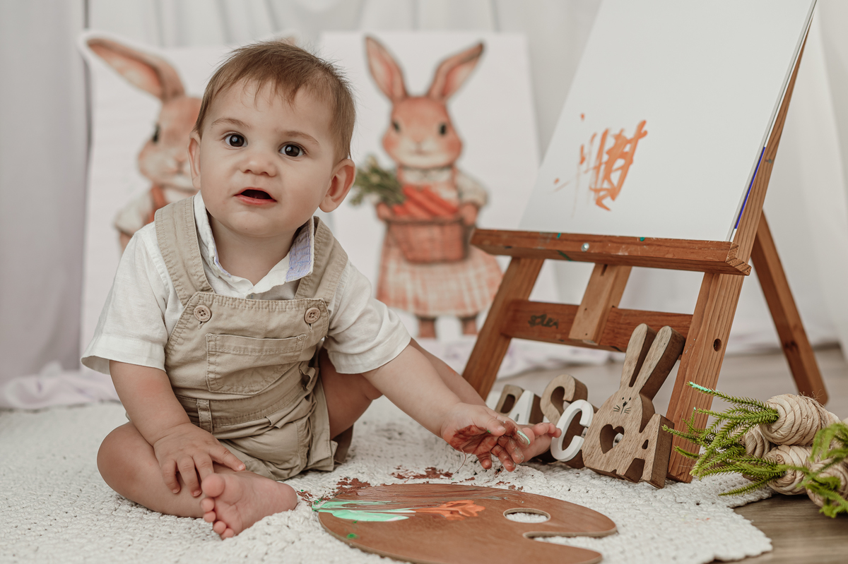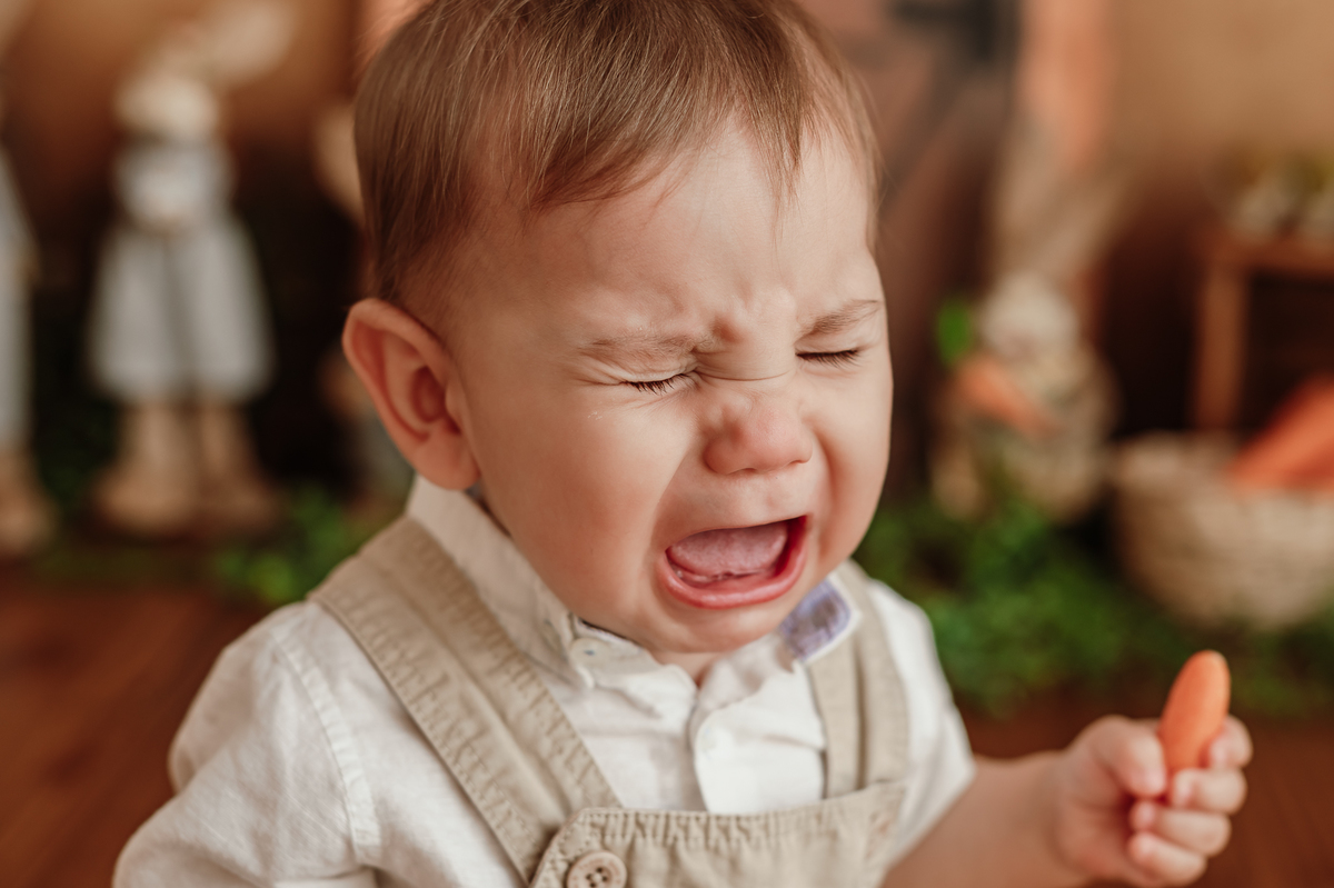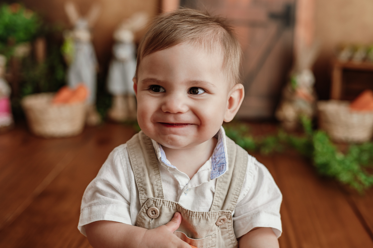 Daqueles bebês que se entregam, que brincam, que olham com curiosidade pra tudo ao redor. Ele riu, explorou, apertou as cenouras, descobriu texturas… e me deu de presente um ensaio inteiro cheio de verdade.