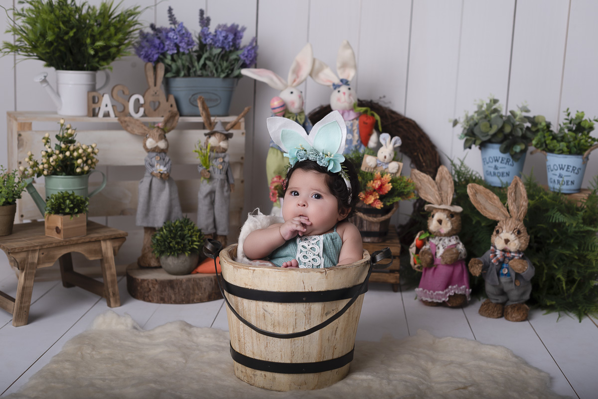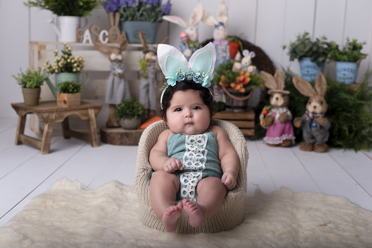 E no mesversário dessa princesa fizemos umas fotos lindas no cenário de Pascóa!!!